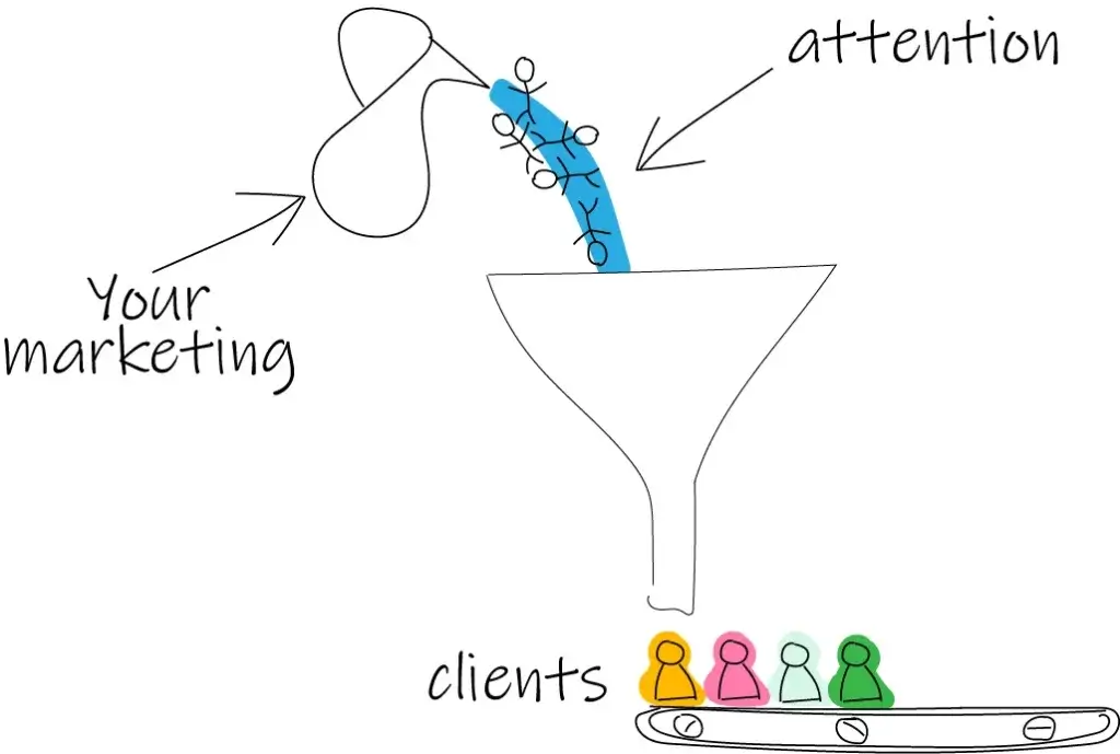 The amount of clients you get won’t change because the funnel at the thin end can only handle so much volume.